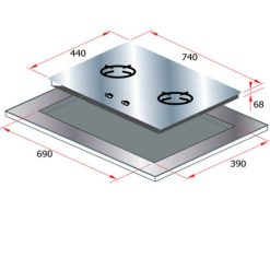 - Kích thước bếp gas âm: 740 x 440 mm